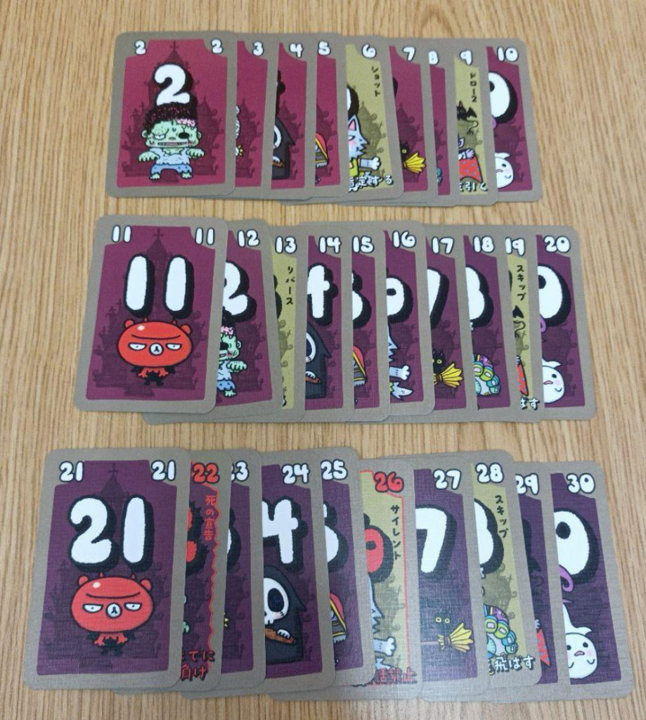 - 山札には通常の数字カードの他に以下の特殊効果カードも混じっています