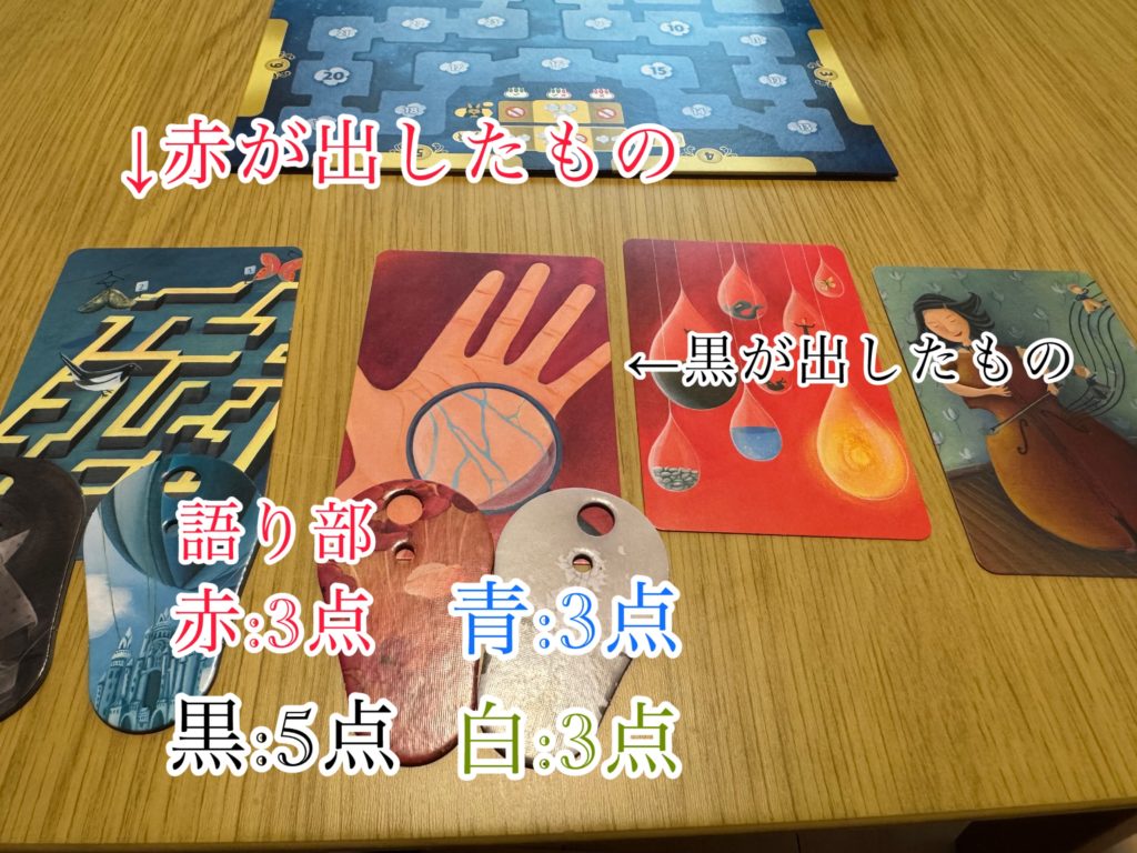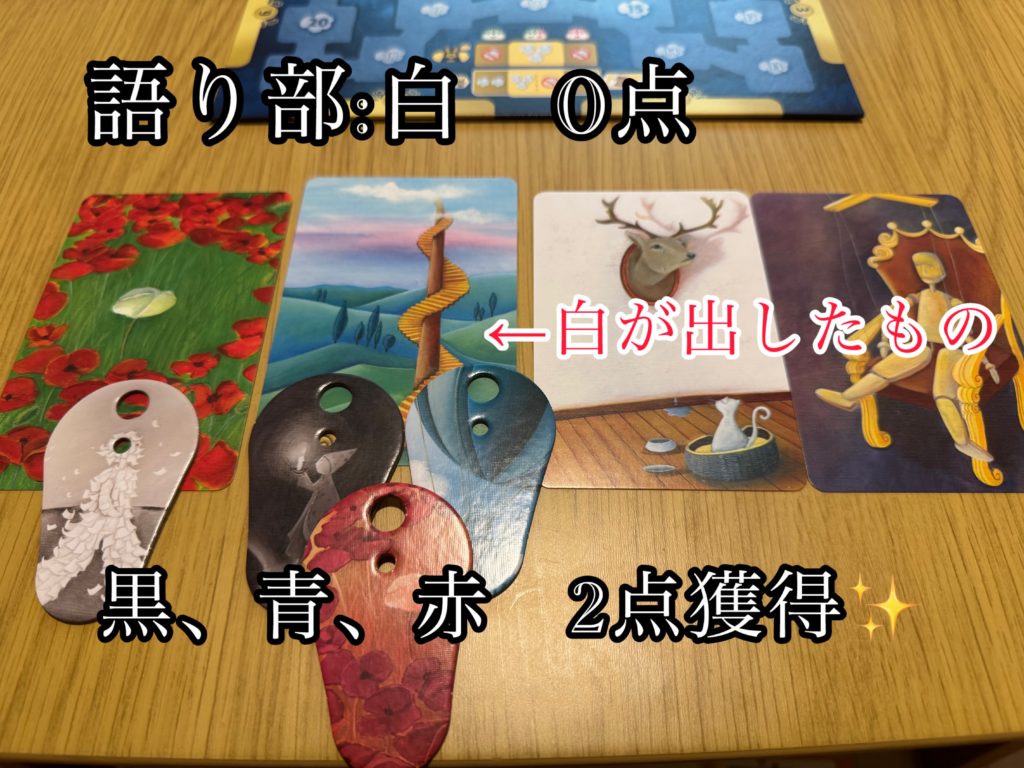 語り部:3点 赤さんが選んだカード:3点 赤さんの絵を選んだ人:3点(黒・青)