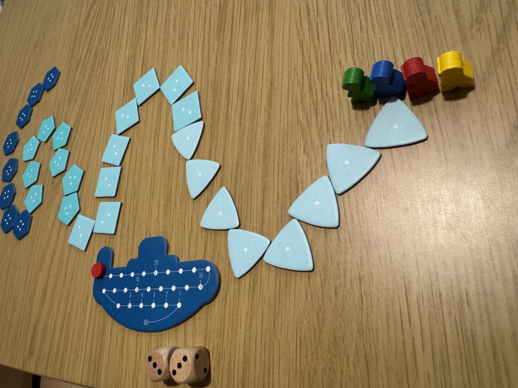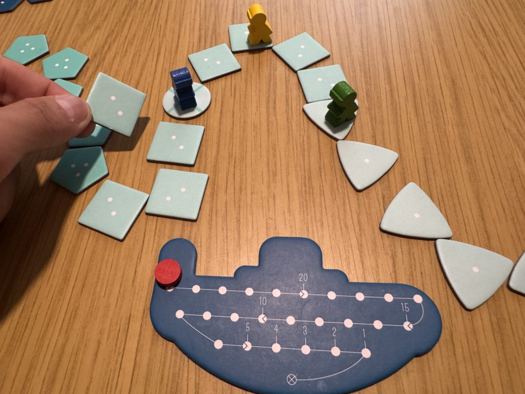 「海底探険」というテーマ(奥に進むほどリスク高、酸素共有)とゲームメカニクスがマッチしていて、「テーマっぽさ」を感じられる。