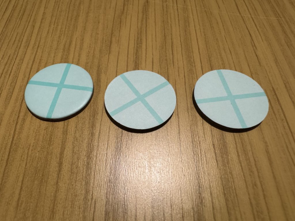 付属の〇に✛のチップ(ブランクチップと呼んでます)を代わりに置きます!この時点ではまだ財宝チップを見てはいけません
