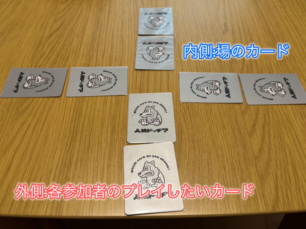 3.プレイカード(今回やる役職)と場のカードを置きます