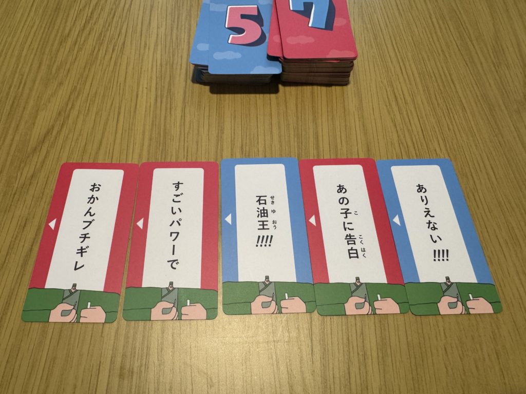 各プレーヤーは短歌を発表します。手札を1枚ずつ公開し、