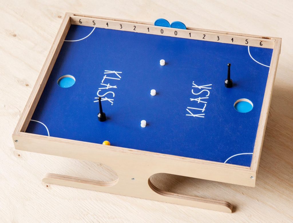 デンマーク発祥の2人用ボードゲームで、エアホッケーのようなスピード感と戦略性を兼ね備えたアクションゲームです。磁石で操作するストライカーを使ってボールを相手のゴールに入れたら得点ゲット👍